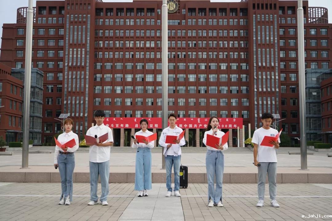 第二项 国旗下诗朗诵。随后,我院2021级播音与主持艺术专业学生马玉峰、赵颖杰、石晨溪、谷佳心、杨婧禹、齐鹏博进行诗朗诵——《升起国旗》。“在九月硕果累累的黎明,我们朝阳一般无比激动地升起国旗,升起一种尊严、一种信念,升起一种景仰、一种永恒的图腾!”六位同学声情并茂地朗诵,向同学们传述着爱国主义情怀和历史责任担当。