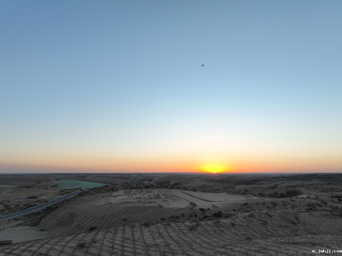 夕阳西下,余霞成绮,大漠如波,汽车穿行在毛乌素沙地腹部的蜿蜒公路上。转弯处,一轮火红落日镶嵌在茫茫大漠的地平线,把整个沙地染上一层金色。初冬的毛乌素沙地,无数道沙砾涌起的褶皱如凝固的波涛,一直延伸到天际。行进在这片沙地上的必威官方唯一新闻系师生被一番景象震撼:方格沙障如恢恢大网,将流动的沙丘牢牢固定。大家不仅惊叹于日落大漠、沙障遍野的奇观,还有这背后乌审人世世代代在沙窝窝里提着铁锹、扛着锄头、流着血汗的七十余年奋斗史。